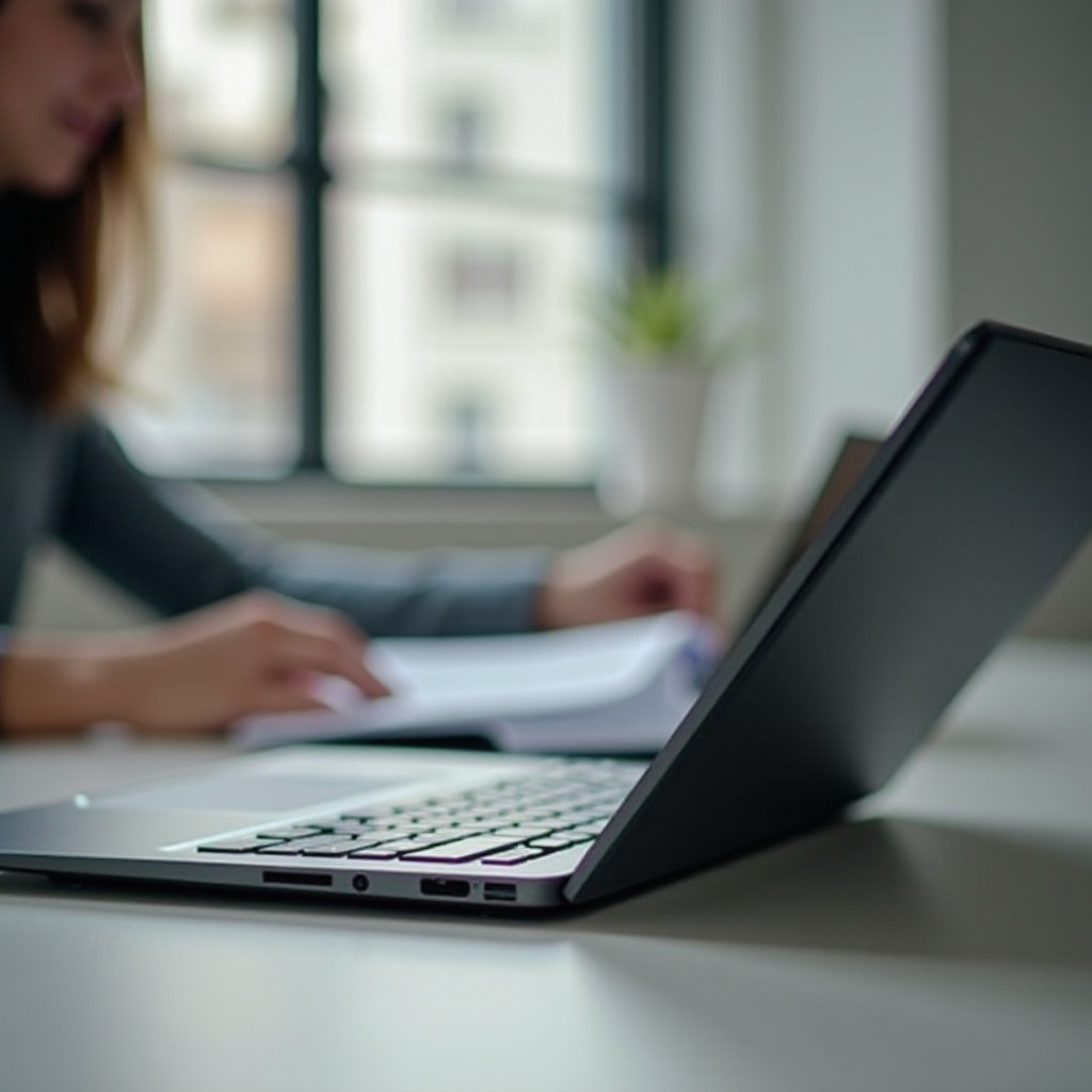 Das schlanke und leichte Design begünstigt zudem die Mobilität. Der Laptop passt mühelos in jede Tasche, was ihn hervorragend für Arbeitseinsätze unterwegs macht. Dies zusammen mit der robusten Bauweise macht ihn zu einem idealen Begleiter für mobile Profis.